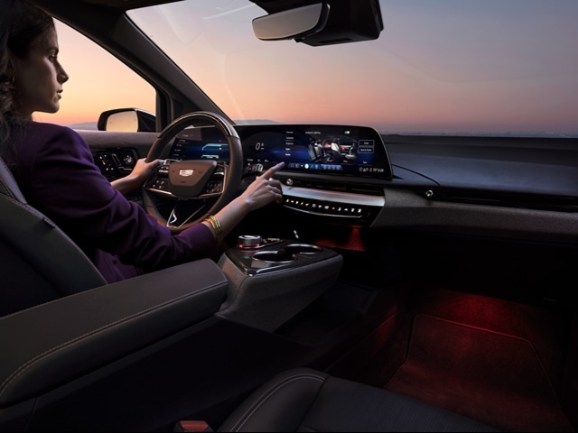 The Cadillac OPTIQ is a five-passenger electric SUV with 26 cubic feet of segment-leading rear cargo volume. Enjoy your VIP room on journeys to the Las Vegas Motor Speedway or the Hollywood Aquatic Center in Sunrise Manor. Modern colorways, inviting details, and massaging front seats create a first-class cabin. You can even add a panoramic glass roof with a power shade. The interior of the Cadillac OPTIQ features recycled materials. The patterned accent fabric is woven from recycled yarn, and PaperWood veneer is available. With 126-color dual-zone ambient lighting, you have an array of color options to express your personality. It's easy to remain comfortable in any setting, as ventilated front seats and heated rear seats are offered for the new Cadillac OPTIQ.