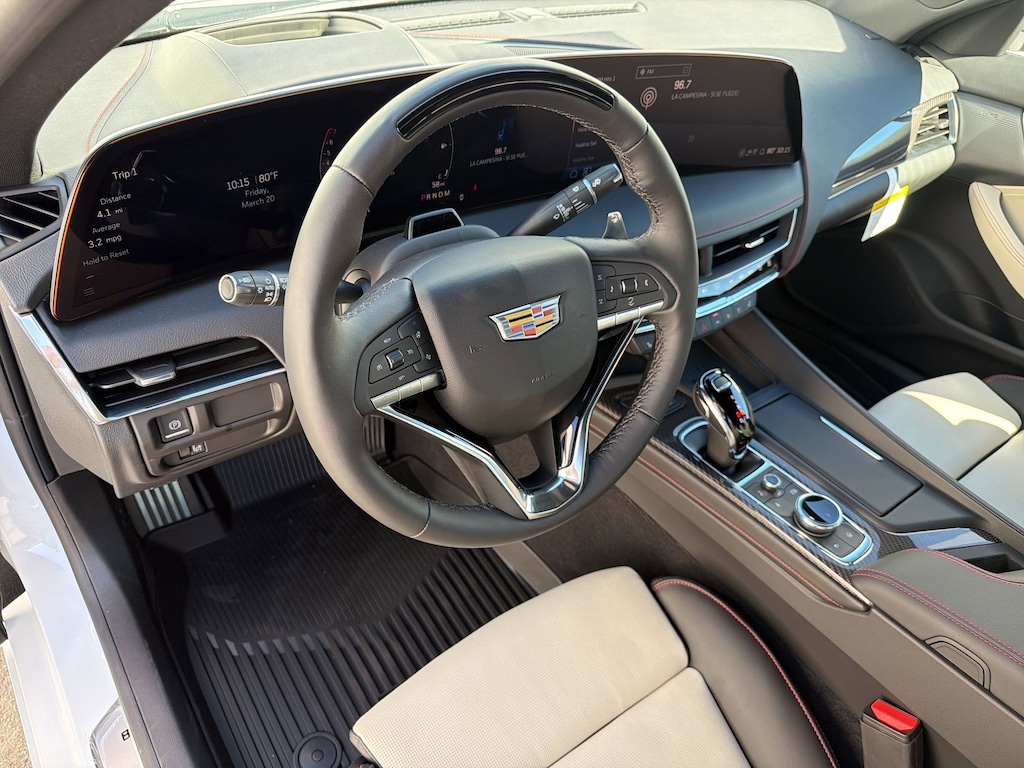 Warning tones, seat belt unfasten, Visors, driver and front passenger illuminated vanity mirrors, USB ports, 3 total one type A and one type C full function (front center console storage compartment) and charge-only one type C in rear of center console for second row passengers, Universal Home Remote, Turn signal, front LED lamp, Transmission, 10-speed automatic, Traffic Sign Recognition, enhanced, sensor indicator, Tow hook, Tires, 245/40R19, all-season, run-flat (Lower profile tires wear faster. Wheel and tire damage may occur on rough or damaged roads or from surfaces or from curbs, debris or obstacles. This damage is not covered by the GM New Vehicle Limited Warranty. For more details, go to my.cadillac.com/learnAbout/tires or see your dealer.), Tire, spare, none, Tire Pressure Monitoring System, Tail lamps, neutral-density, gray-tinted transparent outer lens with red crystal inner elements, Tail lamps, LED, Suspension, Ride and Handling, Super Cruise advanced driver assistance technology, for use on compatible roads. Includes 3 years of OnStar One with Super Cruise upgrade (Requires (UE1) OnStar and (R9M) 3 Years OnStar One. Always pay attention while driving and when using Super Cruise. Always use Super Cruise in accordance with local laws. Do not use a hand-held device. Requires active Super Cruise plan or trial. Terms apply. Visit cadillac.com/supercruise for compatible roads and full details. After initial 3-year period, OnStar Super Cruise plan must be purchased. Services vary by vehicle and model and require active service plan, working electrical system, cell reception and GPS signal. Does not include safety services; Super Cruise vehicles are connected to emergency services. See onstar.com for details and limitations.), Steering wheel, Super Cruise, leather-wrapped, Steering wheel, heated, Steering wheel mounted Alloy paddle shift controls, Steering column, power tilt and telescoping, Spoiler, rear, body-color.