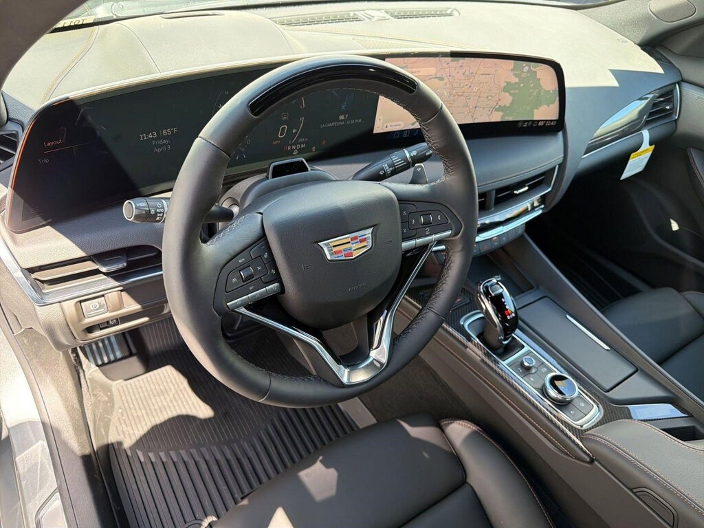 Warning tones, seat belt unfasten, Visors, driver and front passenger illuminated vanity mirrors, USB ports, 3 total one type A and one type C full function (front center console storage compartment) and charge-only one type C in rear of center console for second row passengers, Universal Home Remote, Turn signal, front LED lamp, Transmission, 10-speed automatic, Traffic Sign Recognition, enhanced, sensor indicator, Tow hook, Tires, 245/40R19, all-season, run-flat (Lower profile tires wear faster. Wheel and tire damage may occur on rough or damaged roads or from surfaces or from curbs, debris or obstacles. This damage is not covered by the GM New Vehicle Limited Warranty. For more details, go to my.cadillac.com/learnAbout/tires or see your dealer.), Tire, spare, none, Tire Pressure Monitoring System, Tail lamps, neutral-density, gray-tinted transparent outer lens with red crystal inner elements, Tail lamps, LED, Suspension, Ride and Handling, Super Cruise advanced driver assistance technology, for use on compatible roads. Includes 3 years of OnStar One with Super Cruise upgrade (Requires (UE1) OnStar and (R9M) 3 Years OnStar One. Always pay attention while driving and when using Super Cruise. Always use Super Cruise in accordance with local laws. Do not use a hand-held device. Requires active Super Cruise plan or trial. Terms apply. Visit cadillac.com/supercruise for compatible roads and full details. After initial 3-year period, OnStar Super Cruise plan must be purchased. Services vary by vehicle and model and require active service plan, working electrical system, cell reception and GPS signal. Does not include safety services; Super Cruise vehicles are connected to emergency services. See onstar.com for details and limitations.), Steering wheel, Super Cruise, leather-wrapped, Steering wheel, heated, Steering wheel mounted Alloy paddle shift controls, Steering column, power tilt and telescoping, Spoiler, rear, body-color.