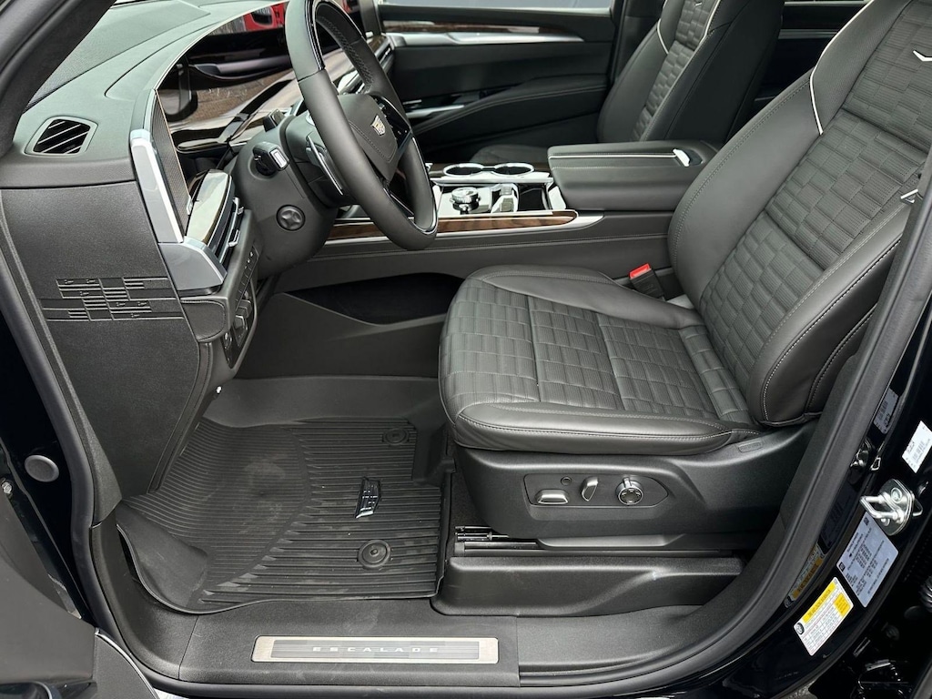 Transfer case, active, 2-speed, push-button controls includes neutral position for dinghy towing. (4WD models only.), Trailering equipment, heavy-duty includes trailering hitch platform, 7-wire harness with independent fused trailering circuits and 7-way sealed connector, Trailering Assist Guidelines, Trailering App accessible through the infotainment system. Designed to help ease the process of trailering at all stages during hitching and setup, on the road and when responding to potential hazards along the way, Trailer brake controller, integrated, Traffic Sign Recognition, Tow/Haul mode selector, Tires, 275/50R22SL all-season, blackwall, Tire, full-size spare P265/70R17 all-season, blackwall, Tire Pressure Monitoring System auto learn, includes Tire Fill Alert (does not apply to spare tire), Tire Fill Alert provides visual and audible alerts outside the vehicle when inflating an under inflated tire to the recommended tire pressure, Theft-deterrent system, unauthorized entry, engine immobilizer, Theft-deterrent alarm system, content theft alarm, self-powered horn, Tail lamps, LED illumination, Suspension, Magnetic Ride Control, Suspension, Air Ride Adaptive, Super Cruise a hands-free driver assistance system for use on compatible roads. Includes Hands on Lane Centering Assist (HoLCA) and Driver Attention Assist (Always pay attention while driving and when using Super Cruise. Do not use a hand-held device. Requires active Super Cruise plan or trial. Terms apply. Visit cadillac.com/supercruise for compatible roads and full details.), Sunroof, power, panoramic with tilt, slide, express-open/close and sun shade control, Steering, Electric Power Steering (EPS), Steering wheel, leather-wrapped, with mounted audio and cruise controls.