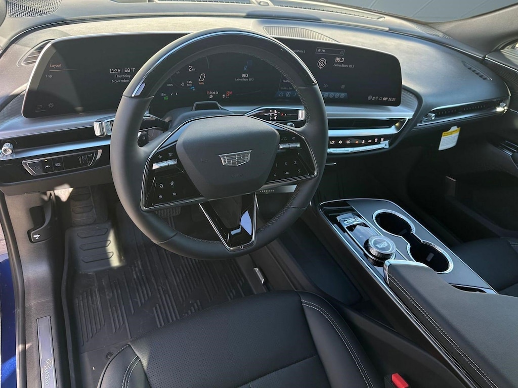 Visors, driver and front passenger illuminated vanity mirrors, Vehicle-to-home all V2H-capable GM EV's can provide power to your properly equipped home in a blackout. (The GM Energy PowerShift Charger and GM Energy V2H Enablement Kit requires an adequately charged and properly equipped GM EV having bidirectional charging capabilities, a properly equipped home, and proper grid interconnection. Some eligible 24MY EVs will require a dealership or over-the-air update to enable bidirectional charging. Weather conditions, life of the battery, vehicle variation and usage, and other external factors may impact the duration of power supply. Power supply may be interrupted. It is not recommended that the following devices be powered with the GM Energy PowerShift Charger and V2H Enablement Kit: Medical Devices.), USB ports, type-C, (3) full-function front row, USB ports, type-C, (2) charge-only, rear, Universal Home Remote includes garage door opener, programmable, Transmission, none, Traction control, Tires, 265/50R20 all-season self-sealing, Theft-deterrent system, unauthorized entry, Tail lamps, LED, Suspension, front and rear 5-link with passive plus premium dampers, Super Cruise advanced driver assistance technology, for use on compatible roads. Includes 3 years of OnStar One with Super Cruise upgrade (Requires (UE1) OnStar and (R9M) 3 Years OnStar One. Always pay attention while driving and when using Super Cruise. Do not use a hand-held device. Requires active Super Cruise plan or trial. Terms apply. Visit cadillac.com/supercruise for compatible roads and full details. After initial 3-year period, OnStar Super Cruise plan must be purchased. Services vary by vehicle and model and require active service plan, working electrical system, cell reception and GPS signal. Does not include safety services; Super Cruise vehicles are connected to emergency services. See onstar.com for details and limitations.), Steering wheel, heated, Steering wheel, 3-spoke, Steering column, power tilt and telescoping, StabiliTrak, vehicle stability enhancement system, Spoiler, lower rear, illuminated, SiriusXM with 360L Trial Subscription. SiriusXM with 360L transforms your customers' ride with our most extensive and personalized radio experience on the road. (IMPORTANT: The SiriusXM trial subscription is not provided on vehicles that are ordered for Fleet Daily Rental ("FDR") use. Trial subscription is subject to the SiriusXM Customer Agreement and privacy policy, visit siriusxm.com which includes full terms and how to cancel. All fees, content, features, and availability are subject to change. Some features require GM connected vehicle services.), Sill plates, non-illuminated, front door, Side Bicyclist Alert.