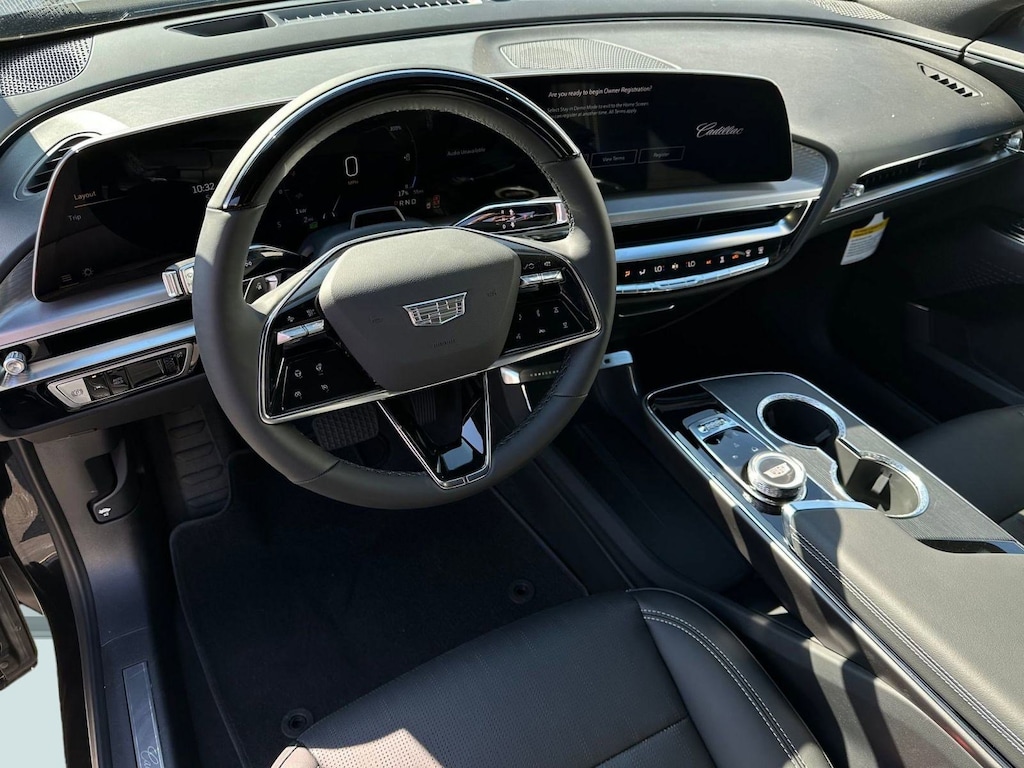 Visors, driver and front passenger illuminated vanity mirrors, Vehicle-to-home all V2H-capable GM EV's can provide power to your properly equipped home in a blackout. (The GM Energy PowerShift Charger and GM Energy V2H Enablement Kit requires an adequately charged and properly equipped GM EV having bidirectional charging capabilities, a properly equipped home, and proper grid interconnection. Some eligible 24MY EVs will require a dealership or over-the-air update to enable bidirectional charging. Weather conditions, life of the battery, vehicle variation and usage, and other external factors may impact the duration of power supply. Power supply may be interrupted. It is not recommended that the following devices be powered with the GM Energy PowerShift Charger and V2H Enablement Kit: Medical Devices.), USB ports, type-C, (3) full-function front row, USB ports, type-C, (2) charge-only, rear, Universal Home Remote includes garage door opener, programmable, Transmission, none, Traction control, Tires, 265/50R20 all-season self-sealing, Theft-deterrent system, unauthorized entry, Tail lamps, LED, Suspension, front and rear 5-link with passive plus premium dampers, Super Cruise advanced driver assistance technology, for use on compatible roads. Includes 3 years of OnStar One with Super Cruise upgrade (Requires (UE1) OnStar and (R9M) 3 Years OnStar One. Always pay attention while driving and when using Super Cruise. Do not use a hand-held device. Requires active Super Cruise plan or trial. Terms apply. Visit cadillac.com/supercruise for compatible roads and full details. After initial 3-year period, OnStar Super Cruise plan must be purchased. Services vary by vehicle and model and require active service plan, working electrical system, cell reception and GPS signal. Does not include safety services; Super Cruise vehicles are connected to emergency services. See onstar.com for details and limitations.), Steering wheel, heated, Steering wheel, 3-spoke, Steering column, power tilt and telescoping, StabiliTrak, vehicle stability enhancement system, Spoiler, lower rear, illuminated, SiriusXM with 360L Trial Subscription. SiriusXM with 360L transforms your customers' ride with our most extensive and personalized radio experience on the road. (IMPORTANT: The SiriusXM trial subscription is not provided on vehicles that are ordered for Fleet Daily Rental ("FDR") use. Trial subscription is subject to the SiriusXM Customer Agreement and privacy policy, visit siriusxm.com which includes full terms and how to cancel. All fees, content, features, and availability are subject to change. Some features require GM connected vehicle services.), Sill plates, non-illuminated, front door, Side Bicyclist Alert.
