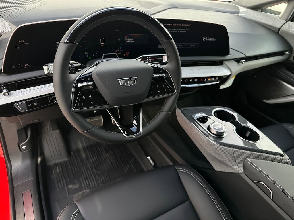 LPO, FLOOR LINER PACKAGE includes (CAV) Integrated cargo liner, LPO and (RIA) Contoured floor liners, LPO , LPO, GM CCS1 DC ADAPTER Dual purpose public fast charging and residential V2H discharging adapter. For public use at CCS fast charging stations not on the North American Charging Standard and residential use with the (5AV) GM Energy PowerShift Charger to discharge power from the vehicle to the home. Intended for NACS native inlet vehicles, LPO, CONTOURED FLOOR LINERS, LPO, CARGO SHADE, REAR, LICENSE PLATE BRACKET, FRONT, ENGINE, NONE (STD), EMISSION OVERRIDE, FEDERAL, ELECTRIC DRIVE UNIT, SECONDARY, 1 MOTOR, INTEGRATED INVERTER, DUAL LEVEL CHARGE CORD (STD), BLACK ROOF, PAINTED, Wireless Phone Charging (The system wirelessly charges one compatible mobile device. Some phones have built-in wireless charging technology and others require a special adaptor/back cover. To check for phone or other device compatibility, see my.cadillac.com/learnAbout/wireless-charging or consult your carrier.), Wipers, front intermittent, Rainsense, Wi-Fi Hotspot capable (Terms and limitations apply. See onstar.com or dealer for details.), Wheels, 20" (50.8 cm) Dark Android painted alloy with aero inserts, Wheel, spare, none, Visors, driver and front passenger illuminated sliding vanity mirrors, Vision Enhanced Automatic Parking Assist, Vehicle-to-home (V2H) all V2H-capable GM EV's can provide power to your properly equipped home in a blackout (The GM Energy PowerShift Charger and GM Energy V2H Enablement Kit requires an adequately charged and properly equipped GM EV having bidirectional charging capabilities, a properly equipped home, and proper grid interconnection. Some eligible 24MY EVs will require a dealership or over-the-air update to enable bidirectional charging. Weather conditions, life of the battery, vehicle variation and usage, and other external factors may impact the duration of power supply. Power supply may be interrupted. It is not recommended that the following devices be powered with the GM Energy PowerShift Charger and V2H Enablement Kit: Medical Devices.), USB ports, type-C, front lower console, dual, charge-only, USB ports, type-C, dual, charge-only, rear console.