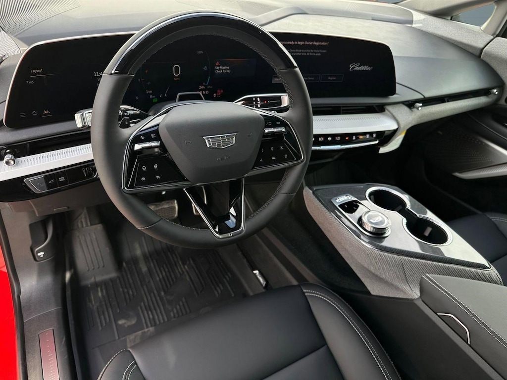 LICENSE PLATE BRACKET, FRONT, ENGINE, NONE (STD), EMISSION OVERRIDE, FEDERAL, DUAL LEVEL CHARGE CORD (STD), Wireless Phone Charging (The system wirelessly charges one compatible mobile device. Some phones have built-in wireless charging technology and others require a special adaptor/back cover. To check for phone or other device compatibility, see my.cadillac.com/learnAbout/wireless-charging or consult your carrier.), Wipers, front intermittent, Rainsense, Wi-Fi Hotspot capable (Terms and limitations apply. See onstar.com or dealer for details.), Wheels, 20" (50.8 cm) Dark Android painted alloy with aero inserts, Wheel, spare, none, Visors, driver and front passenger illuminated sliding vanity mirrors, Vehicle-to-home (V2H) all V2H-capable GM EV's can provide power to your properly equipped home in a blackout (The GM Energy PowerShift Charger and GM Energy V2H Enablement Kit requires an adequately charged and properly equipped GM EV having bidirectional charging capabilities, a properly equipped home, and proper grid interconnection. Some eligible 24MY EVs will require a dealership or over-the-air update to enable bidirectional charging. Weather conditions, life of the battery, vehicle variation and usage, and other external factors may impact the duration of power supply. Power supply may be interrupted. It is not recommended that the following devices be powered with the GM Energy PowerShift Charger and V2H Enablement Kit: Medical Devices.), USB ports, type-C, front lower console, dual, charge-only, Universal Home Remote, Transmission, none, Trailering provisions includes 4-wire electrical harness and 4-pin sealed connector, Traffic Sign Recognition, Tires, 245/50R20 all-season, self-sealing, Tire, spare, none, Theft-deterrent system, unauthorized entry, Tail lamps, LED.