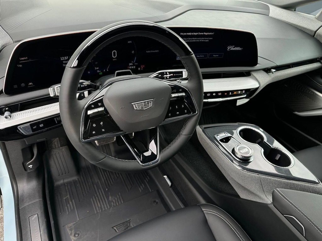 LPO, FLOOR LINER PACKAGE includes (CAV) Integrated cargo liner, LPO and (RIA) Contoured floor liners, LPO , LPO, GM CCS1 DC ADAPTER Dual purpose public fast charging and residential V2H discharging adapter. For public use at CCS fast charging stations not on the North American Charging Standard and residential use with the (5AV) GM Energy PowerShift Charger to discharge power from the vehicle to the home. Intended for NACS native inlet vehicles, LPO, CONTOURED FLOOR LINERS, LICENSE PLATE BRACKET, FRONT, ENGINE, NONE (STD), EMISSION OVERRIDE, FEDERAL, DUAL LEVEL CHARGE CORD (STD), BLACK ROOF, PAINTED, Wireless Phone Charging (The system wirelessly charges one compatible mobile device. Some phones have built-in wireless charging technology and others require a special adaptor/back cover. To check for phone or other device compatibility, see my.cadillac.com/learnAbout/wireless-charging or consult your carrier.), Wipers, front intermittent, Rainsense, Wi-Fi Hotspot capable (Terms and limitations apply. See onstar.com or dealer for details.), Wheels, 20" (50.8 cm) Dark Android painted alloy with aero inserts, Wheel, spare, none, Visors, driver and front passenger illuminated sliding vanity mirrors, Vision Enhanced Automatic Parking Assist, Vehicle-to-home (V2H) all V2H-capable GM EV's can provide power to your properly equipped home in a blackout (The GM Energy PowerShift Charger and GM Energy V2H Enablement Kit requires an adequately charged and properly equipped GM EV having bidirectional charging capabilities, a properly equipped home, and proper grid interconnection. Some eligible 24MY EVs will require a dealership or over-the-air update to enable bidirectional charging. Weather conditions, life of the battery, vehicle variation and usage, and other external factors may impact the duration of power supply. Power supply may be interrupted. It is not recommended that the following devices be powered with the GM Energy PowerShift Charger and V2H Enablement Kit: Medical Devices.), USB ports, type-C, front lower console, dual, charge-only, USB ports, type-C, dual, charge-only, rear console, Universal Home Remote, Transmission, none.