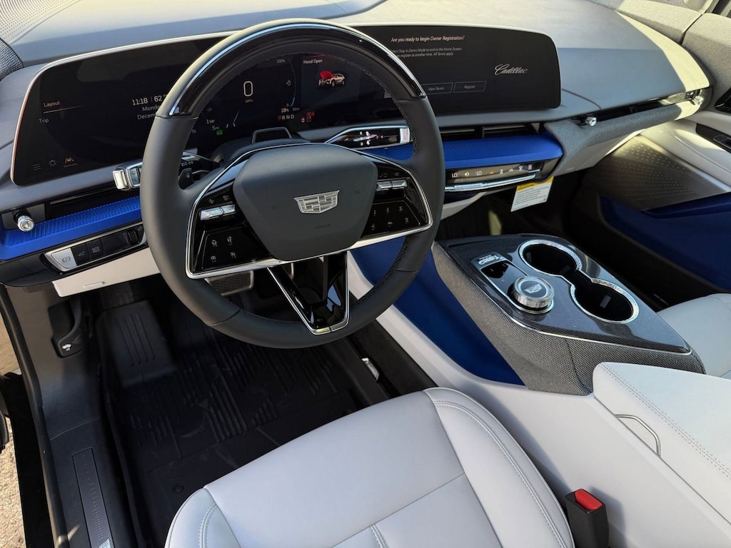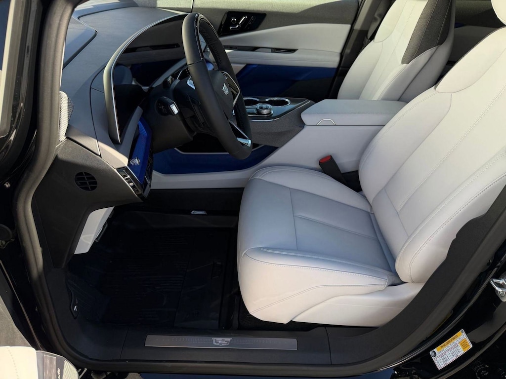 Wireless Phone Charging (The system wirelessly charges one compatible mobile device. Some phones have built-in wireless charging technology and others require a special adaptor/back cover. To check for phone or other device compatibility, see my.cadillac.com/learnAbout/wireless-charging or consult your carrier.), Wipers, front intermittent, Rainsense, Wi-Fi Hotspot capable (Terms and limitations apply. See onstar.com or dealer for details.), Wheels, 20" (50.8 cm) 20" Pearl Nickel painted alloy with aero inserts, Wheel, spare, none, Visors, driver and front passenger illuminated sliding vanity mirrors, Vision Enhanced Automatic Parking Assist, Vehicle-to-home (V2H) all V2H-capable GM EV's can provide power to your properly equipped home in a blackout (The GM Energy PowerShift Charger and GM Energy V2H Enablement Kit requires an adequately charged and properly equipped GM EV having bidirectional charging capabilities, a properly equipped home, and proper grid interconnection. Some eligible 24MY EVs will require a dealership or over-the-air update to enable bidirectional charging. Weather conditions, life of the battery, vehicle variation and usage, and other external factors may impact the duration of power supply. Power supply may be interrupted. It is not recommended that the following devices be powered with the GM Energy PowerShift Charger and V2H Enablement Kit: Medical Devices.), USB ports, type-C, front lower console, dual, charge-only, USB ports, type-C, dual, charge-only, rear console. This Cadillac OPTIQ has a strong Electric engine powering this Automatic transmission.