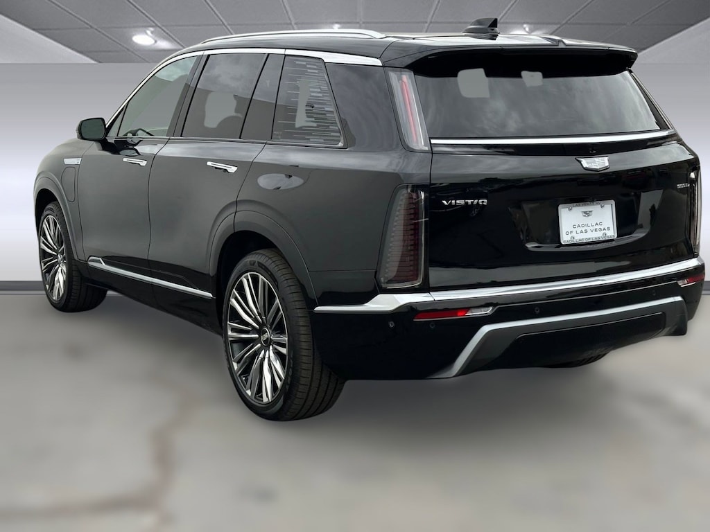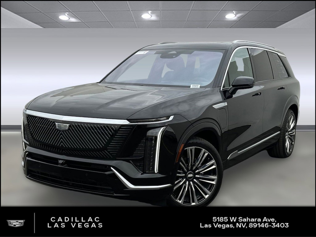Wireless charging, front row, 2 wireless charging pads for phone and portable devices, Wipers, front intermittent, Rainsense, Wiper, rear intermittent, Wi-Fi Hotspot capable (Terms and limitations apply. See onstar.com or dealer for details.), Wheels, 22" (55.9 cm) Diamond Cut with Polish and High Gloss Black finish spokes, Wheel moldings, High Gloss Black, painted, Wheel lugs, locking, Visors, driver and front passenger illuminated sliding vanity mirrors, Vehicle-to-home (V2H) all V2H-capable GM EV's can provide power to your properly equipped home in a blackout (The GM Energy PowerShift Charger and GM Energy V2H Enablement Kit requires an adequately charged and properly equipped GM EV having bidirectional charging capabilities, a properly equipped home, and proper grid interconnection. Some eligible 24MY EVs will require a dealership or over-the-air update to enable bidirectional charging. Weather conditions, life of the battery, vehicle variation and usage, and other external factors may impact the duration of power supply. Power supply may be interrupted. It is not recommended that the following devices be powered with the GM Energy PowerShift Charger and V2H Enablement Kit: Medical Devices.), USB ports, 7 total, type-C, 2 front; 2 second; 2 third rows and 1 center console. This Cadillac VISTIQ has a powerful Electric engine powering this Automatic transmission.