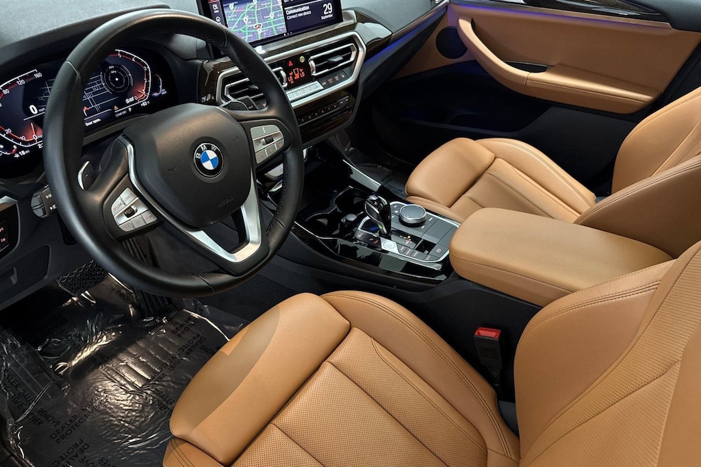 This 2022 BMW X3 sDrive30i is a One Owner vehicle with a Clean Carfax, exterior, and interior. Key features include CONVENIENCE PACKAGE, COMFORT ACCESS KEYLESS ENTRY, HEATED FRONT SEATS, COGNAC PERFORATED SENSATEC UPHOLSTERY, PANORAMIC MOONROOF LIVE COCKPIT PRO W/NAVIGATION, Rear Parking Aid, Blind Spot Monitor, Cross-Traffic Alert, and much more!