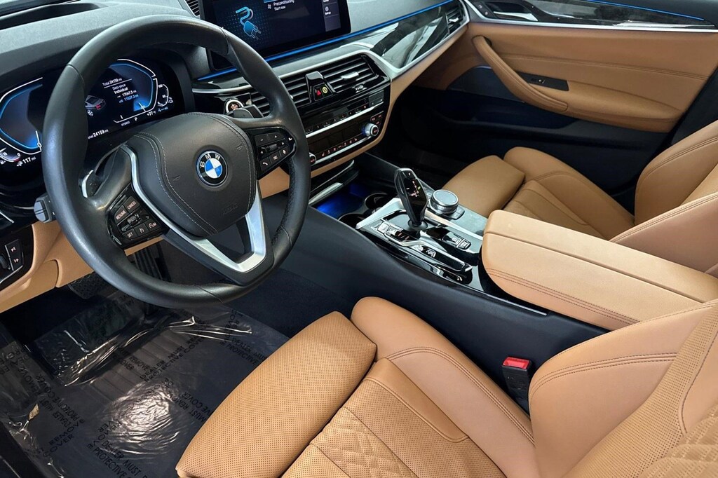 This 2023 BMW 5 Series 530e is a One Owner vehicle with a Clean Carfax, exterior, and interior. Key features include WIRELESS CHARGING, COGNAC PERFORATED SENSATEC UPHOLSTERY, HEATED FRONT SEATS, PREMIUM PACKAGE, GRAY POPLAR WOOD TRIM, Sun/Moonroof, Rear Parking Aid, Blind Spot Monitor, Cross-Traffic Alert, and much more!