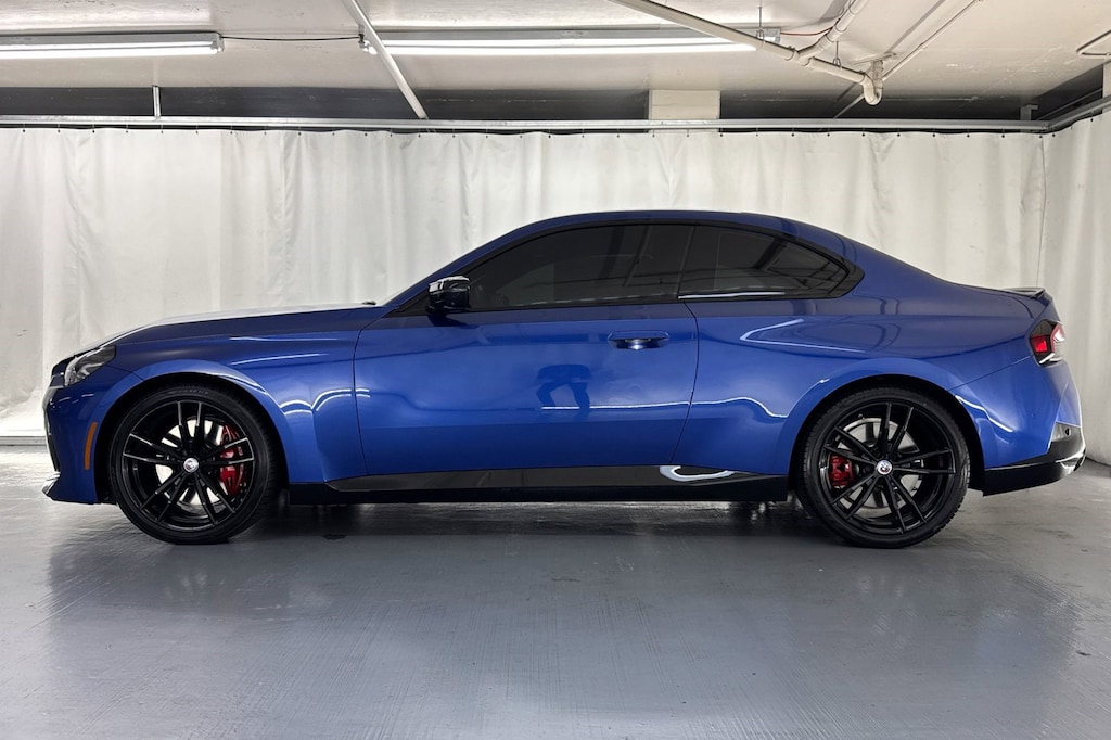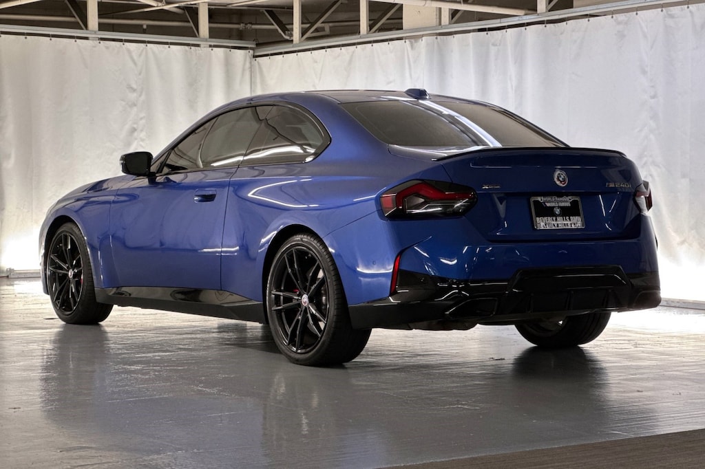 This 2023 BMW 2 Series M240i xDrive has a Clean Carfax, exterior, and interior. Key features include TACORA RED VERNASCA LEATHER UPHOLSTERY, REMOTE ENGINE START, SHADOWLINE PACKAGE, EXTENDED SHADOWLINE TRIM, UNIVERSAL GARAGE-DOOR OPENER, HARMAN/KARDON SURROUND SOUND SYSTEM, PREMIUM PACKAGE, BMW M 50 YEARS EMBLEMS, ILLUMINATED M TRIM, PARKING ASSISTANCE PACKAGE, Sun/Moonroof, and much more!