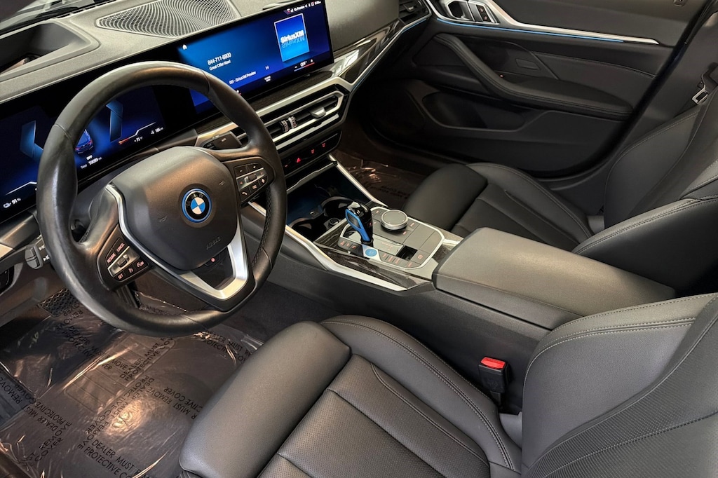This 2023 BMW i4 eDrive35 is a One Owner vehicle, exterior, and interior. Key features include SHADOWLINE EXTERIOR TRIM, BLACK PERFORATED SENSATEC UPHOLSTERY, HIGH GLOSS FINE WOOD ASH GREY-BROWN TRIM, PREMIUM PACKAGE, WIRELESS DEVICE CHARGING, HEATED FRONT SEATS, PARKING ASSISTANCE PACKAGE, BMW CURVED DISPLAY W/HUD, AMBIENT LIGHTING, Electric Motor, Rear Parking Aid, Blind Spot Monitor, Cross-Traffic Alert, and much more!