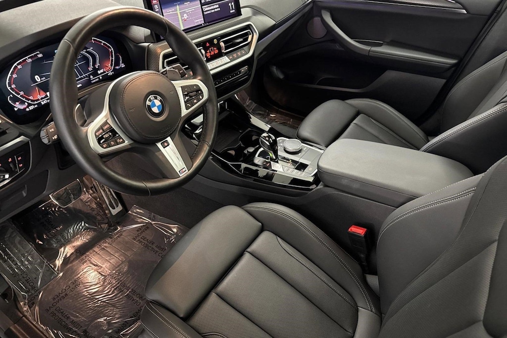 This 2024 BMW X3 xDrive30i is a One Owner vehicle with a Clean Carfax, exterior, and interior. Key features include M SPORT PACKAGE, PANORAMIC MOONROOF, BLACK PERFORATED SENSATEC UPHOLSTERY, HEAD-UP DISPLAY, HEATED STEERING WHEEL, HEATED FRONT SEATS, SHADOWLINE PACKAGE, PREMIUM PACKAGE, HARMAN/KARDON SURROUND SOUND SYSTEM, TRAILER HITCH, Turbocharged, and much more!