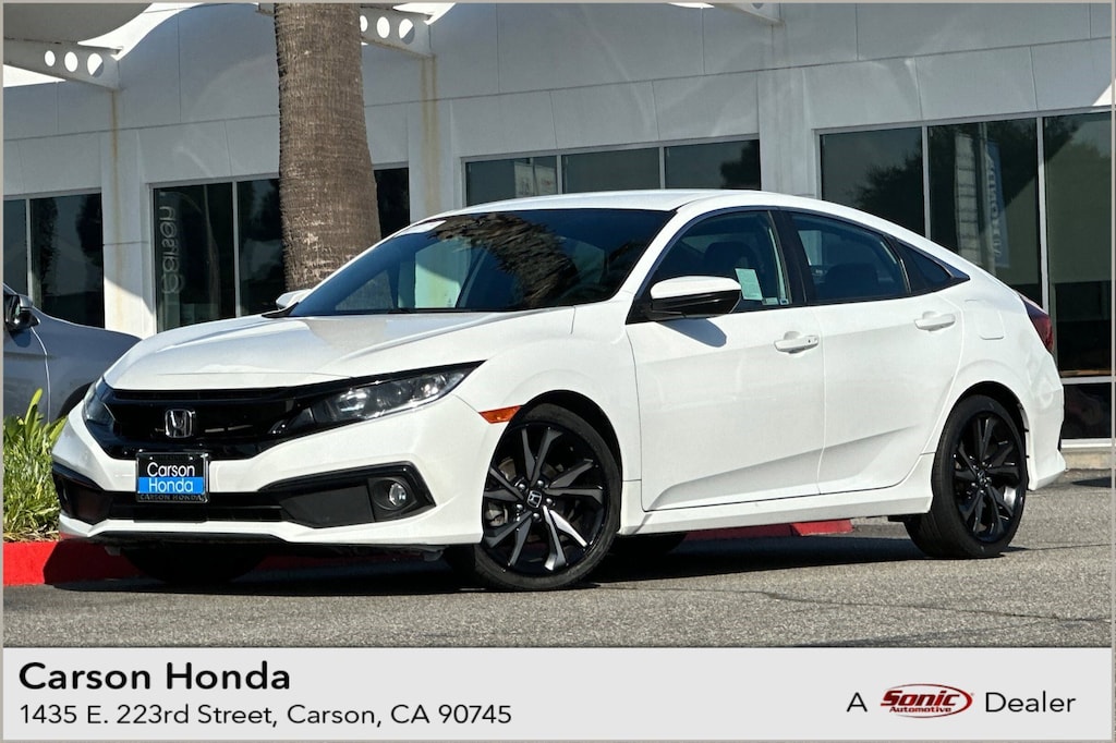 CLEAN CARFAX, 2020 Honda Civic Sedan Sport, Front Wheel Drive, Daytime Running Lights, Bluetooth Connection, Keyless Start, Premium Synthetic Seats, Remote Engine Start, Immobilizer, Lane Keeping Assist, Lane Departure Warning, Front Collision Mitigation, Back-Up Camera, White exterior, and Black interior.